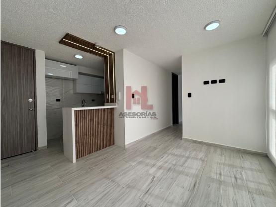 Hermoso apartamento con acabados de lujo, iluminacion led moderna, sus 3 habitaciones con clostes, black outs, panel japones en la sala, barra y meson de la cocina en cuarzo calacata, baños con muebles en lavamanos, espejos luminosos y divisones en vidrio templado, calentador, tendedero, parqueadero cubierto, en conjunto cerrado con piscinas, salon social, parque con juegos infantiles, porteria 24/7 buenas vias de acceso con transporte publico que pasa por la porteria.